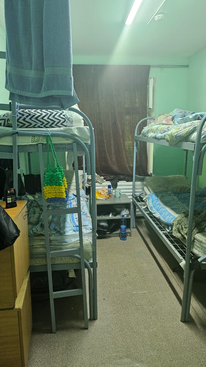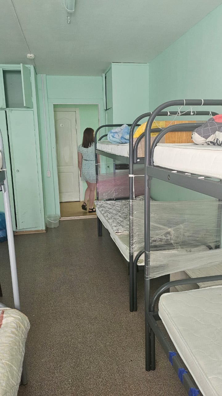 В общежитии. Бывший пионерский лагерь, в комнатах от 6 мест, туалеты и душевые на этаже. Корпуса НЕ НОВЫЕ. Смена белья раз в две недели, регулярная уборка комнат.
